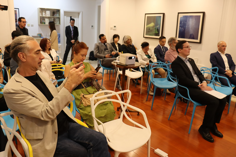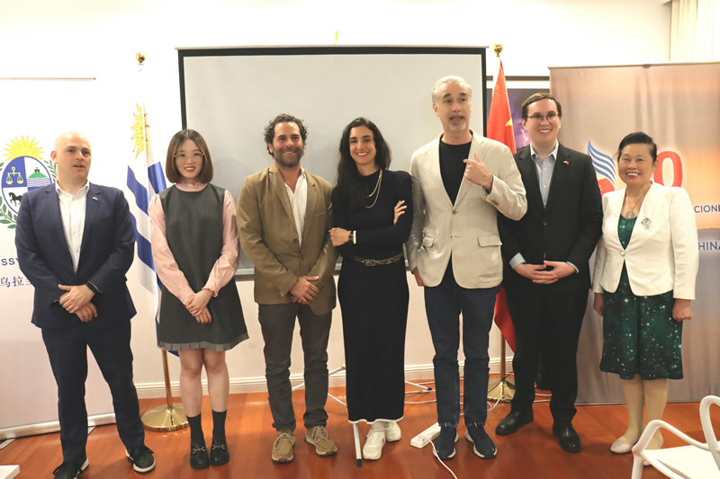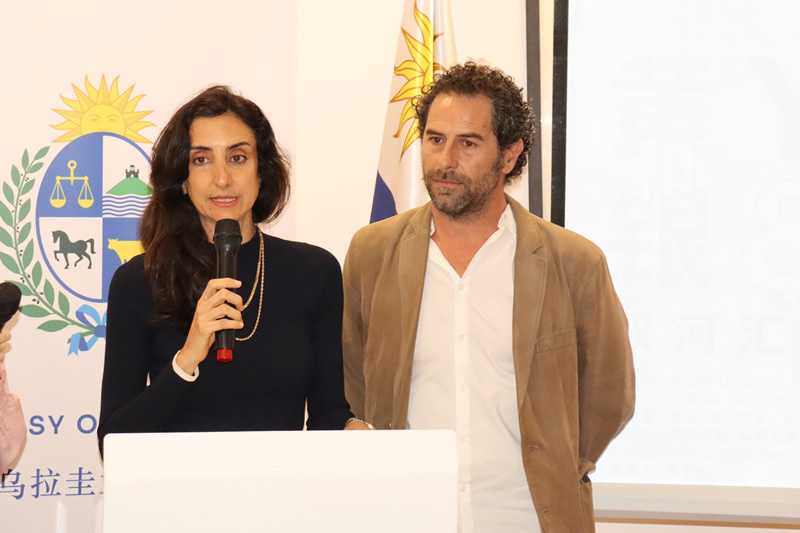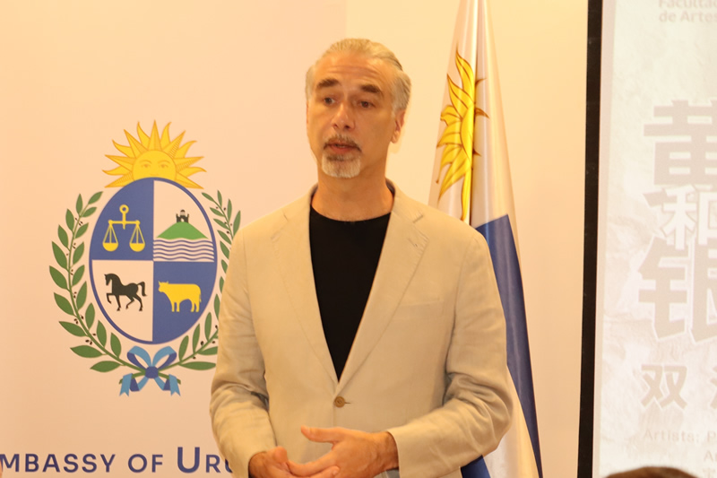 此次乌拉圭共和国大学教授和艺术家宝拉·德尔加多、玛丽安娜·多斯桑托斯、 安德烈斯·桑坦吉洛、亚历山大·图雷尔的汇聚了乌拉圭当代最具活力和代表性的艺术家们的杰作。他们用独特的视角、丰富的媒介和创新的语言,展现了乌拉圭当代艺术多元的面貌和蓬勃的创造力。此次展览的成功举办不仅是一次艺术作品的展示,更是一座连接乌拉圭人民心灵与中国观众情感的桥梁,是一次关于想象力、创造力与人类共通情感的深度对话。衷心希望中国的观众来乌拉圭大使馆感受源自南美的热情与哲思,开启一场跨越地理与文化的自然人文之旅。发布会上,韦燕总裁和乌拉圭艺术家友好交流,因为艺术交流可以跨越语言障碍,有助于拉近乌中两国民众的心理距离。