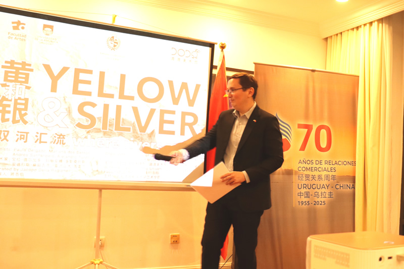 中乌两国虽山海相隔,却因艺术而心灵相通。记者在乌拉圭大使馆展览厅看到:此次“黄和银—双河汇流”以艺术为桥,连通世界文明。此次主题展其传统形式的书写与超现实主义的表达,在思想的交融中凝聚共识,在艺术的共鸣中架起友谊桥梁。