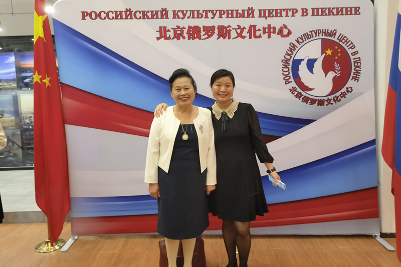 中外新闻社总裁韦燕同俄罗斯驻华大使馆公使衔参赞娜塔莉娅·斯捷普金娜在招待会上