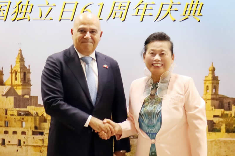 On September 24, at the invitation of Ambassador of Malta to China H.E. Mr. John Busuttil, President of Home and Abroad News Press Mrs. Wei Yan attended the Malta’s 61st National Day Reception at the ballroom of The Peninsula Beijing with many ambassadors. Chinese Vice Foreign Minister Hua Chunying was invited to attend and raised a toast with Ambassador John Busuttil to celebrate Malta’s 61st Independence Day and wishing the friendship between China and Malta carry on from generation to generation.